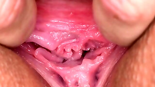 Breathtaking model is showing off her stretched narrow cootchie in macro shot