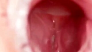 Cummy first-timer pussy close up