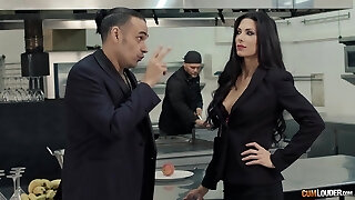 Whorish cougar with huge bra-stuffers Dee Williams goes black in front of her son