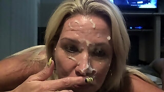 attraente bionda chanel camryn ha a lungo sognato di un bukkake interrazziale in una gangbang forte