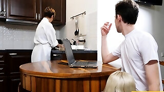 busty tatuato milf bruna viene scopata e impregnato dal suo figliastro mentre il marito è lontano