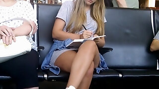 ginormous fondo grande torso nudo biondo hadley viscara lampeggia il suo vag upskirt e ottiene fracassato