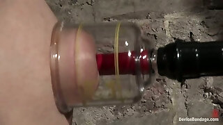 Bellow as oiled bondage damsel gets throbbed with machine in BDSM