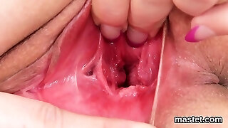 慢摩。 极其特写。 在她的阴部嘴唇之间完成了