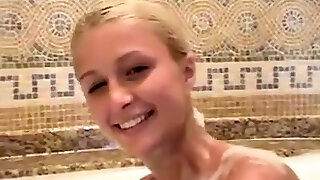 Lonely and voracious Little Caprice undresses to jack her wet pussy