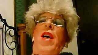 This elderly crossdresser has a nice trouser snake and she loves it