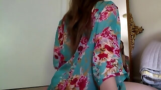 niña de pueblo desnuda por primera vez y muestra su coño peludo virgen de cerca en el dormitorio