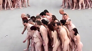 Bare public body painting