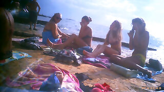 Upshorts beefstick flash for group of girls on beach