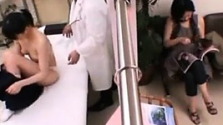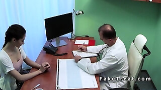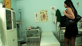 pervertito posa come un medico ginecologo per scopare la bella moglie accanto al suo stupido marito in una consultazione medica erotica