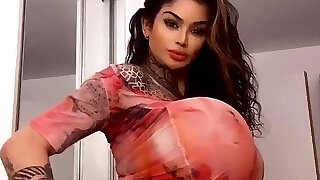 big boobed seducente con i capelli scuri e sexpot utilizza clitoride bacchetta magica per soddisfare il suo coochie