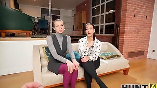 Marvelous asian chick is seducing a guy to cum in her pantyhose while she's giving him hand job