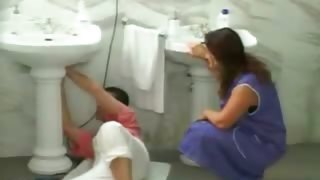 moja macocha myje łazienkę, pozwala mi się kąpać, a ona kończy, odnoszę sukces i proszę ją pieprzyć