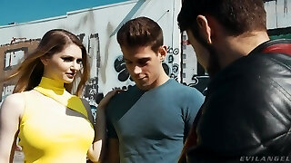 trójka z a mały titted dziewczyna i dwa bi gorący faceci