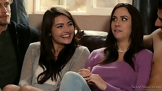 moja urocza szczupła brunetka przyrodnia siostra cieszy mojego wielkiego kutasa swoją ciasną cipką, aby zmusić mnie do zachowania tajemnicy