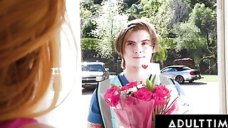 dorosły czas-dziewiczy chłopiec dostawy zostaje oszukany, aby dołączyć do dzikiej, całkowicie odwróconej orgii gangbangowej mamuśki!