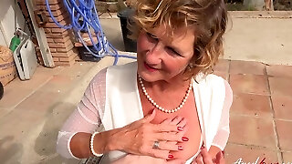 OLDNANNY Horny Mature Got Her Hairy Gash Moist Showing Off Perfect Striptease