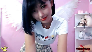 Cute and shy Japanese girl displays her titties and cunny on cam